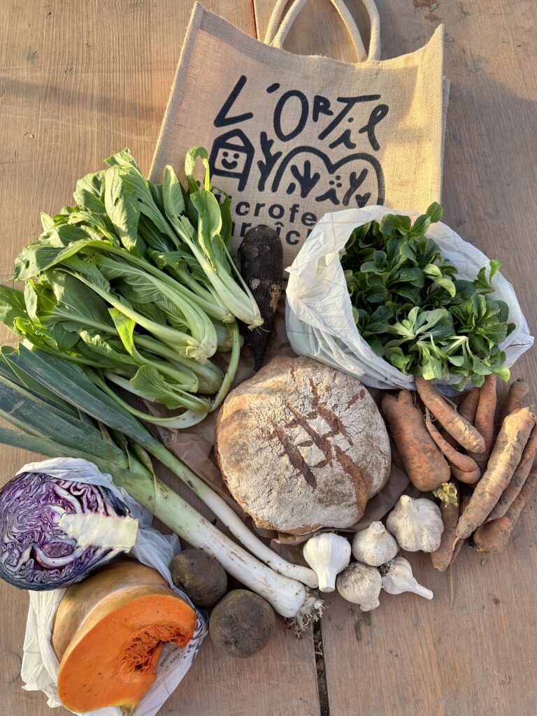 Nous faisons principalement de la vente de légumes via des paniers. Nous vendons aussi à quelques restaurants et épiceries. La plupart des paniers sont livrés à vélo. Il est aussi possible d’avoir du pain bio local au levain et au feu de bois dans les paniers.